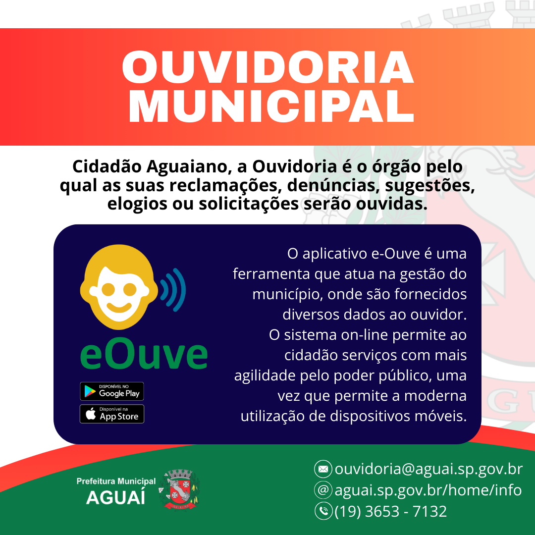 Você pode acessar pelo aplicativo e-Ouve Aguaí que é super rápido e prático ou por meio do site, e-mail e telefone.